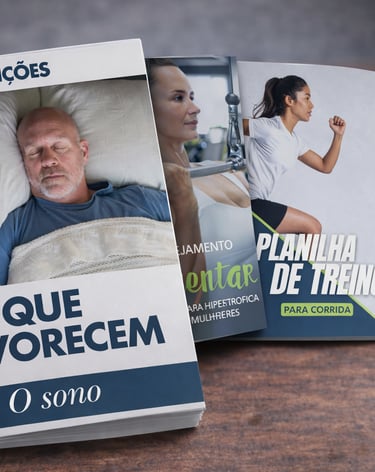 Os materiais abaixo foram pensados para entrega ao aluno, como complemento da consultoria online, aumentando a percepção de cuidado, organização e profissionalismo do seu atendimento.